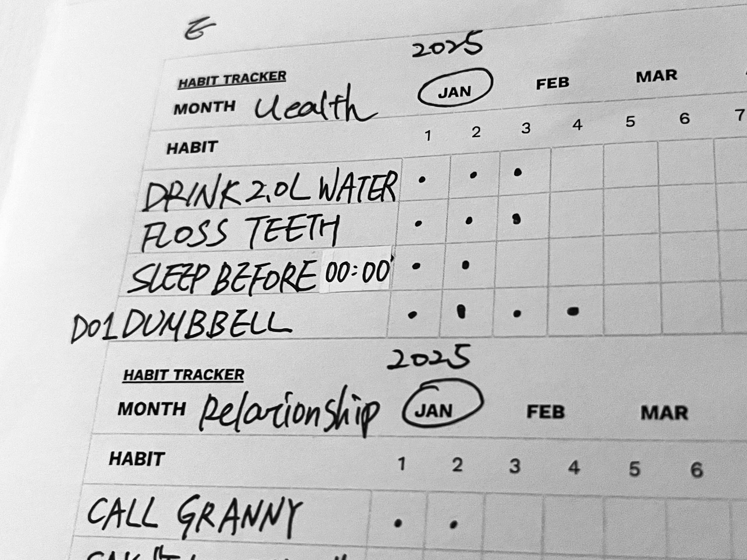 這兩種方法各有特色,James Clear 的追蹤表更注重每日細節的記錄,幫助我清楚掌握習慣每個月養成的全貌;而 Matt D’Avella 的兩天法則則強調彈性,允許自己偶爾會錯過一天,但絕不連續兩天都錯過,這樣的彈性反而更容易持之以恆,特別適合剛開始建立新習慣的人。