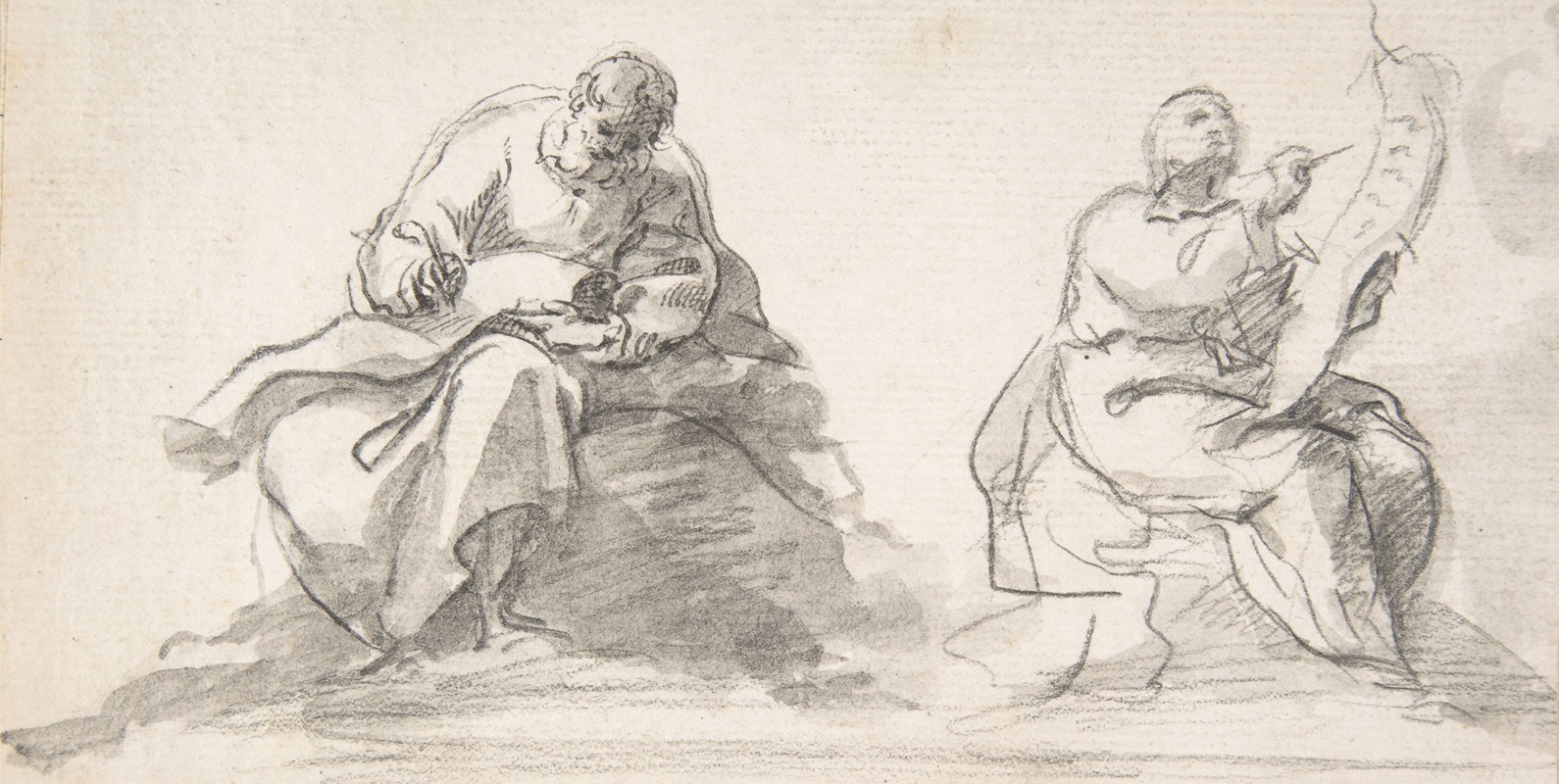 Two Figures of Evangelists Writing, by Pedro Duque Cornejo, Retrieve from Artvee