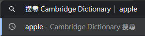 Ctrl + L(跳到網址列)→ 輸入快捷字詞 “cam” + “想查的單字” ,跳轉字典頁面